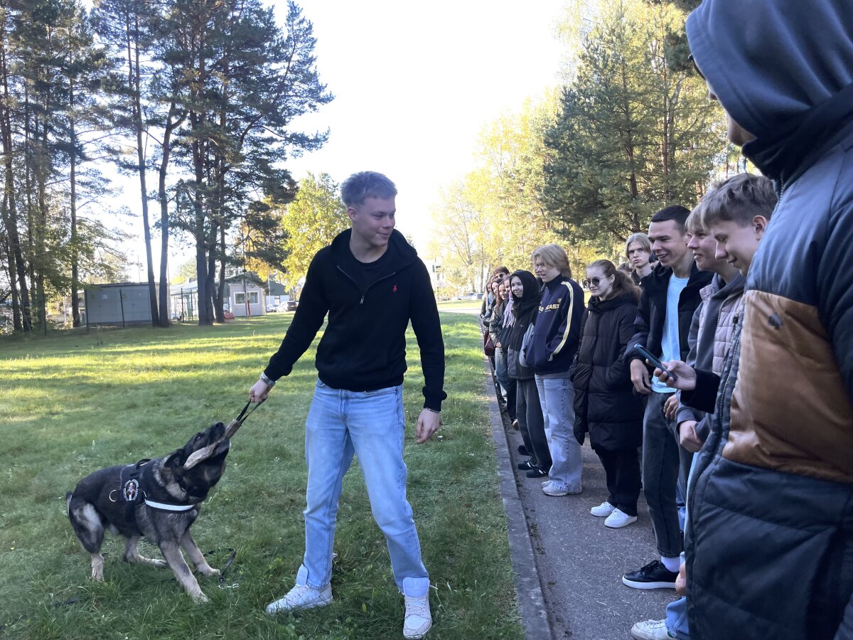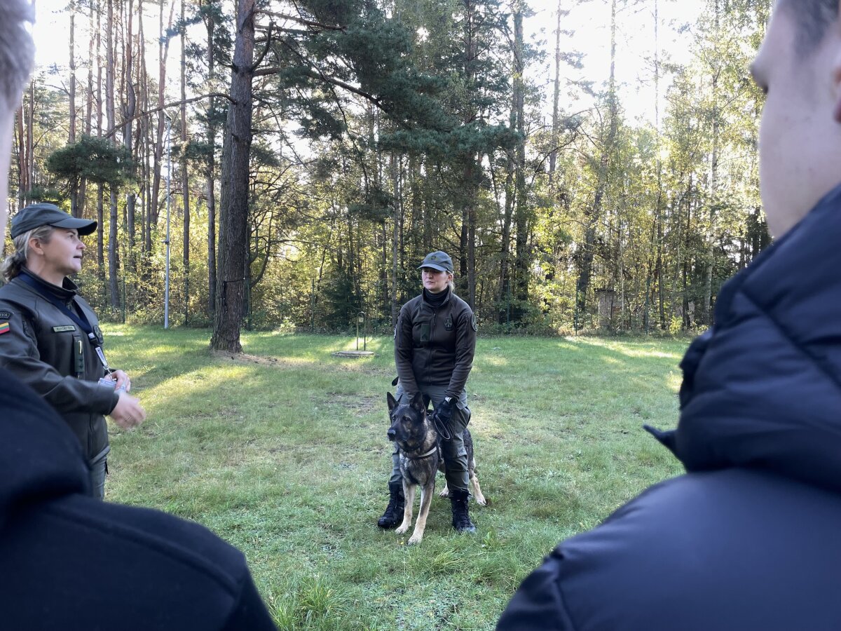 Gimnazistai stebėjo kinologų su šunimis pasirodymus: bendrojo paklusnumo pratimus ir įtariamojo (pažeidėjo) sulaikymo, asmens daiktų paieškos demonstracijas. Mokiniai sužinojo apie narkotinių medžiagų paiešką bei kaip šunys yra tam ruošiami, pabendravo su VSAT kinologe. Ekskursiją vedę pasieniečiai atsakė į visus moksleivius dominusius klausimus ir pasidalijo savo patirtimi ir istorijomis iš pirmų lūpų.