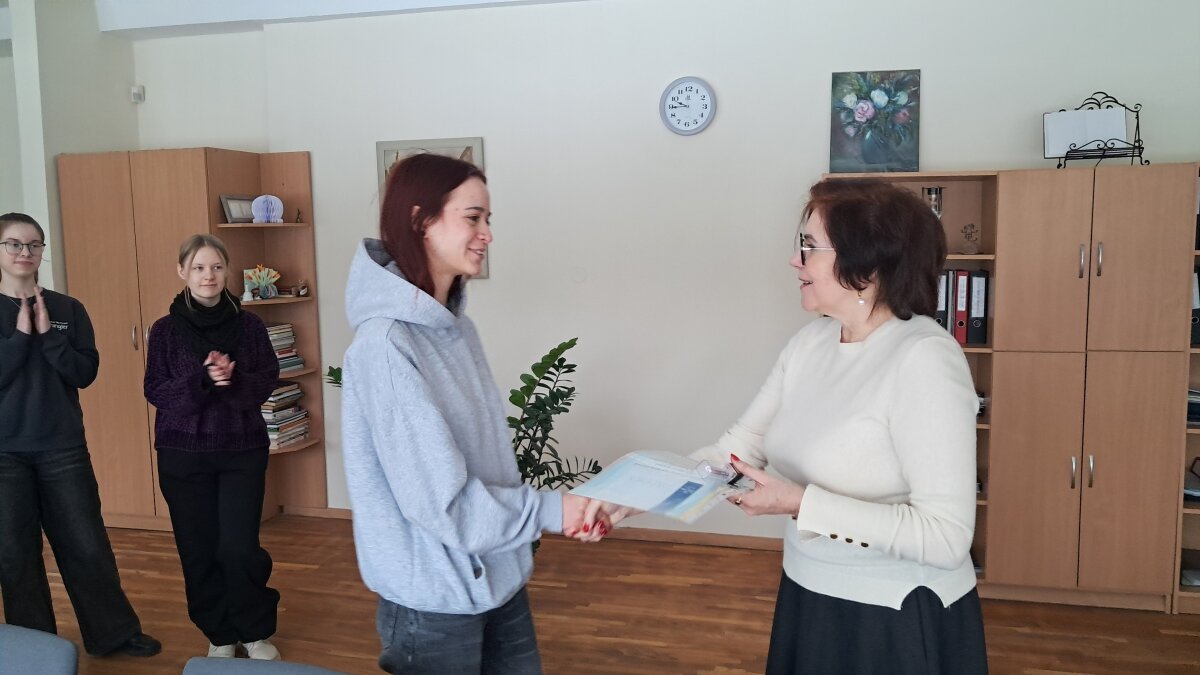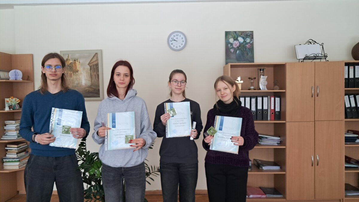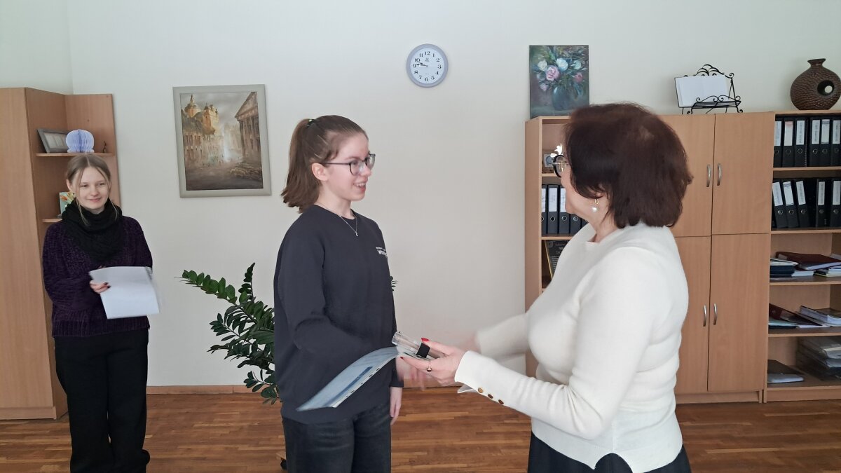 Vasario 25 dieną buvo apdovanoti geriausi gimnazijos skaitovai – Ugnė (IV c), Titas (III b), Benedikta ir Emilija (II b). Šie mokiniai puikiai pasirodė gimnazijos meninio skaitymo popietėje–konkurse „Paleisti žodį kaip paukštį“, įrodė, kad gyvas, jautriai ir prasmingai ištartas žodis turi ypatingą galią, o Ugnė ir Emilija atstovavo mūsų gimnazijai Lietuvos mokinių meninio žodžio konkurso Vilniaus miesto etape. Direktorė padėkojo mokiniams už nuoširdų darbą ir drąsą, linkėjo jiems kūrybinio įkvėpimo ir sėkmės.