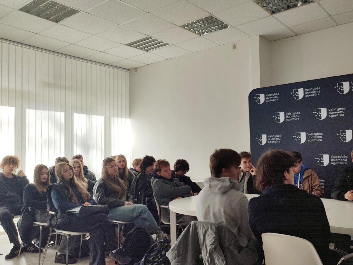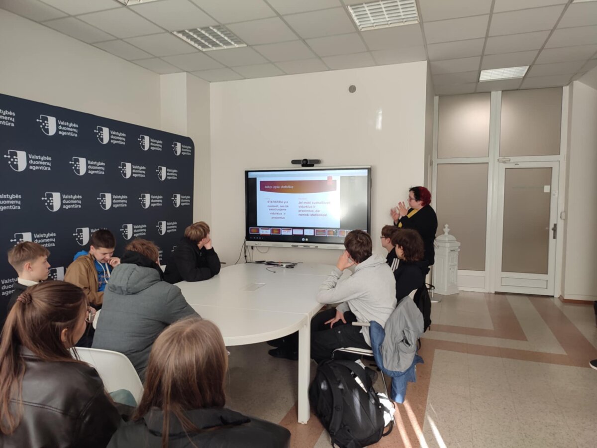 Vilniaus „Minties“ gimnazijos I b klasės mokiniai dalyvavo iniciatyvos „Vilnius yra mokykla“ pamokoje Valstybinėje duomenų agentūroje – „Statistika, duomenų mokslas ir dirbtinis intelektas“.