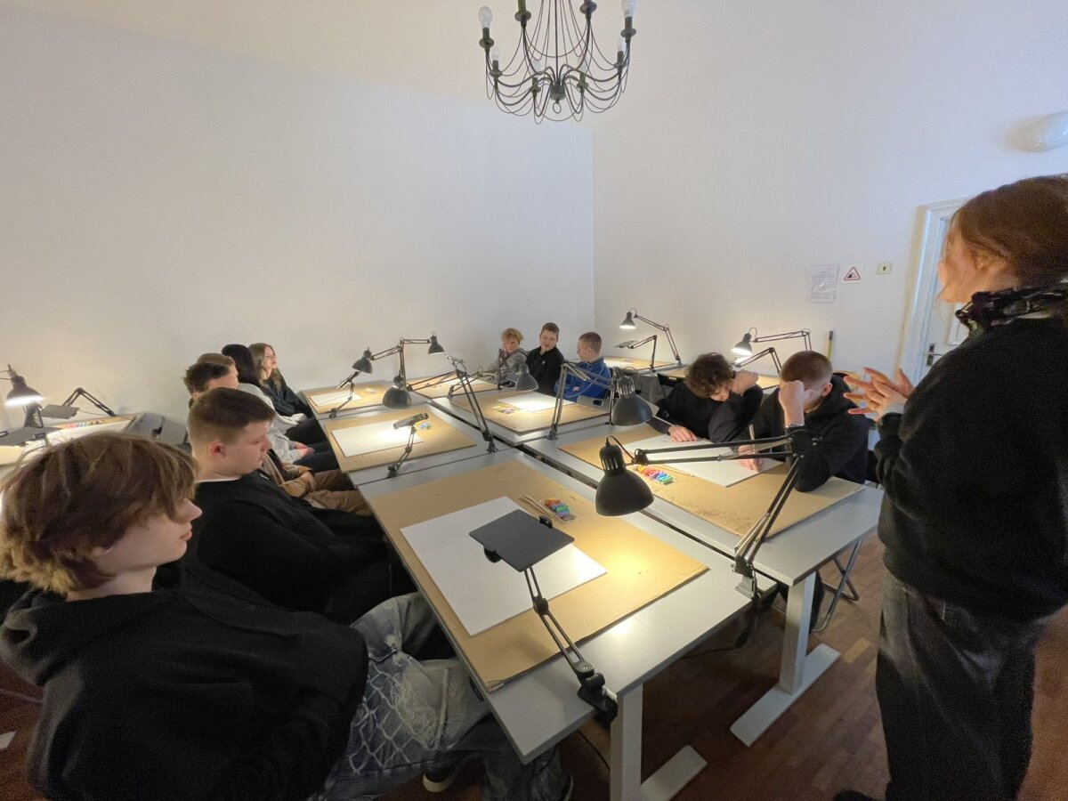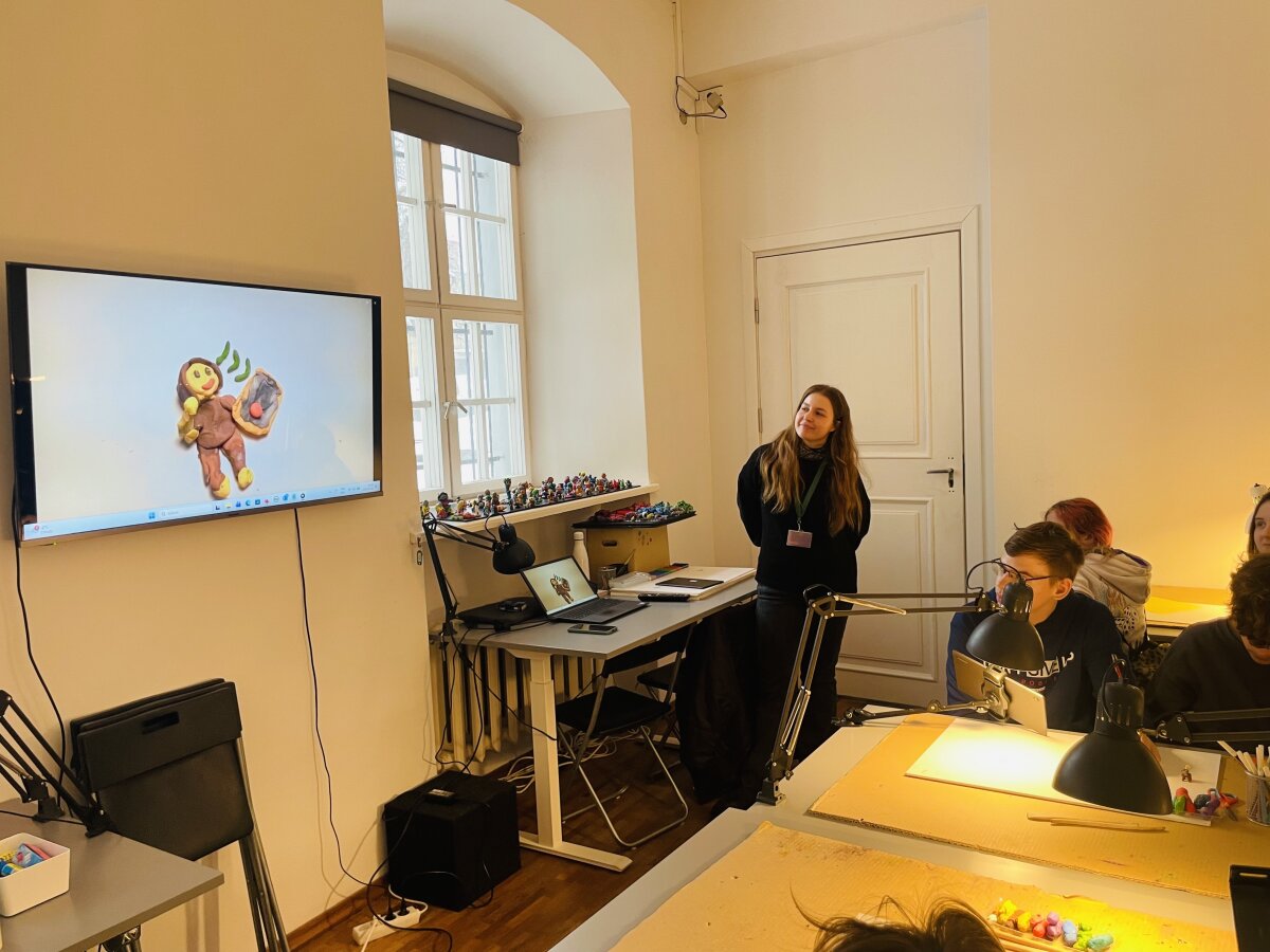 Ji vyko Lietuvos teatro, muzikos ir kino muziejuje, kur mokiniai dalyvavo netradicinėje anglų kalbos pamokoje – animacijos dirbtuvėse „Prisimink Močiutę“.