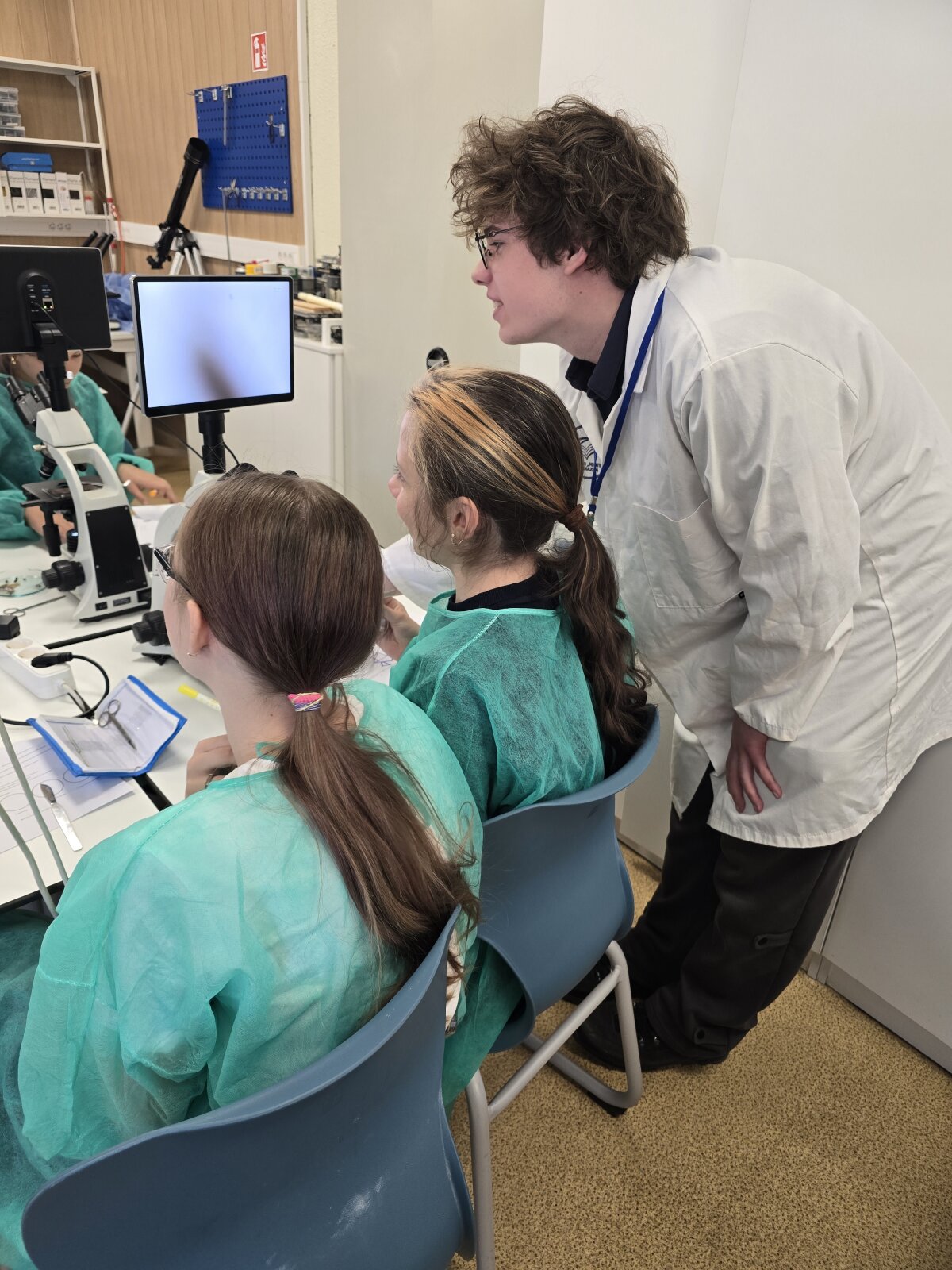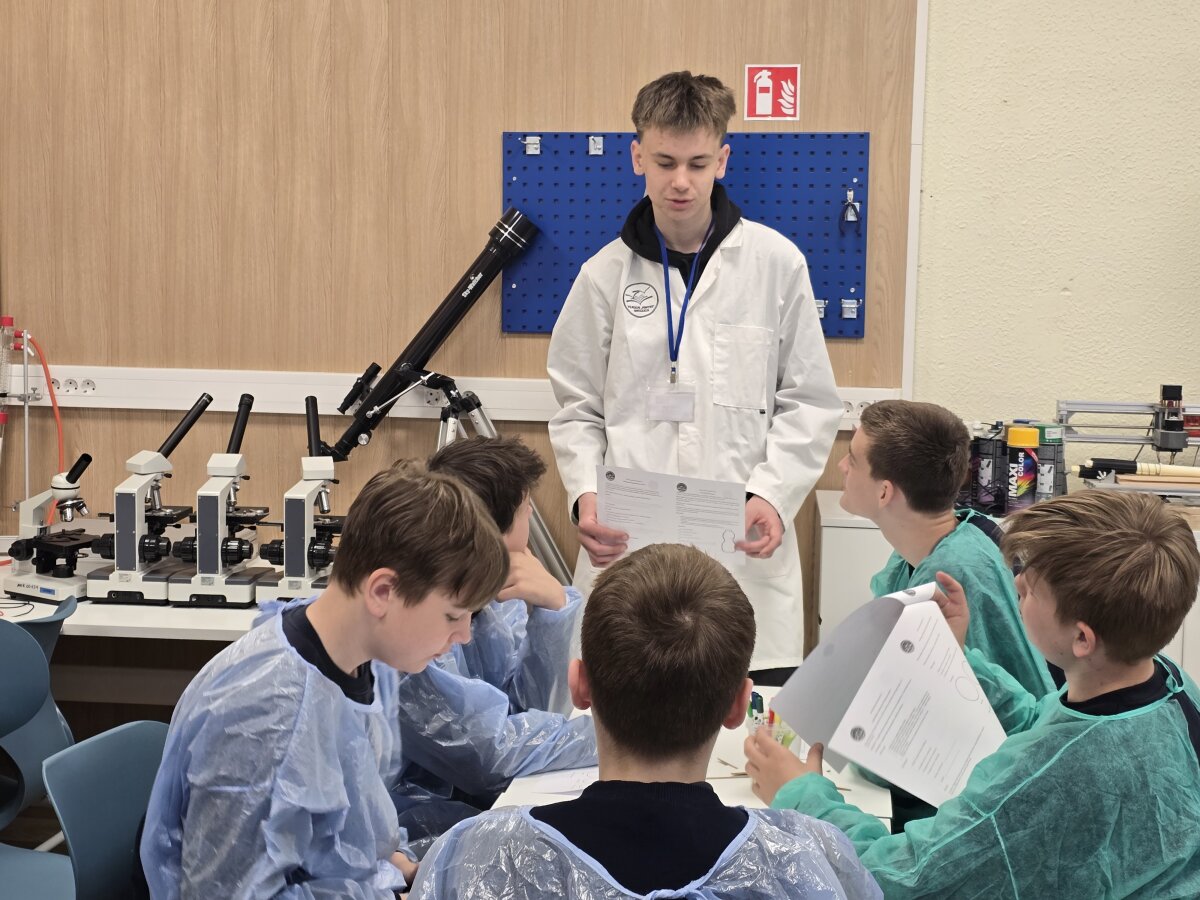 Šio susitikimo metu siekėme parodyti, kad mokslas gali būti gyvas, įtraukiantis ir kupinas netikėtų atradimų. Mokiniai kartu su mumis tyrinėjo tarakonų elgesį, stebėjo įspūdingą chemijos eksperimentą – „dramblio dantų pastą“ bei išbandė savo kūrybiškumą ir loginį mąstymą dėliodami tangramas. Didelį susidomėjimą sukėlė darbas su mikroskopu. Mokiniai turėjo galimybę iš arti apžiūrėti bitės koją bei drugelio sparnus ir patirti, kaip atsiveria plika akimi nematomas pasaulis.