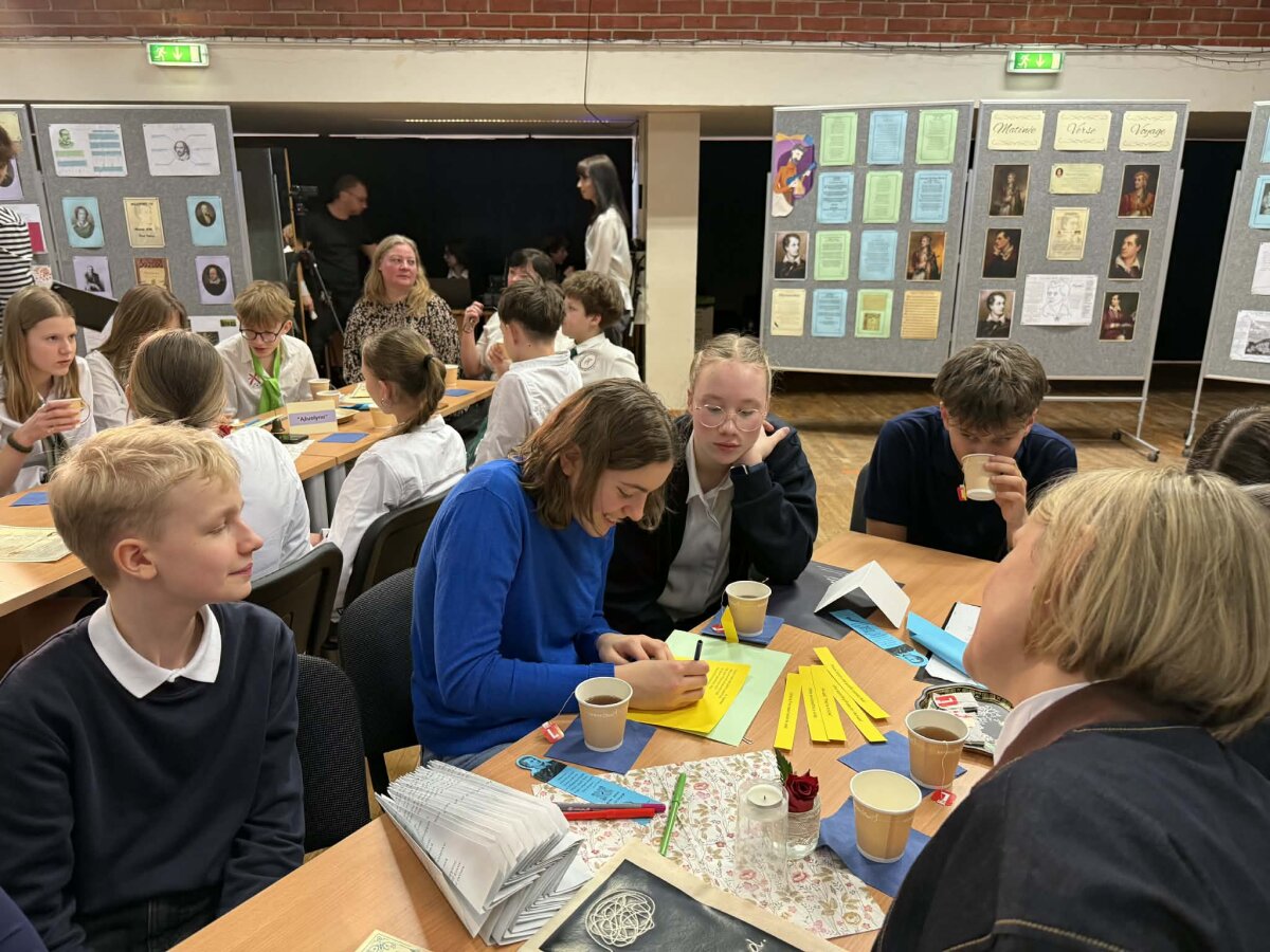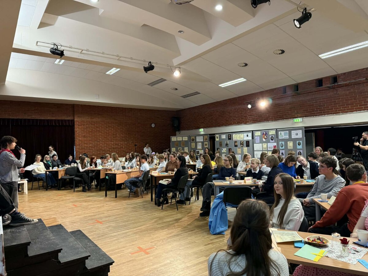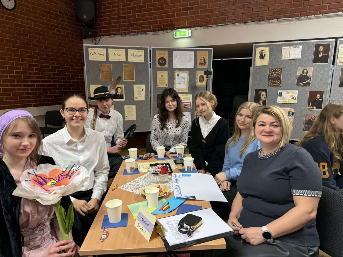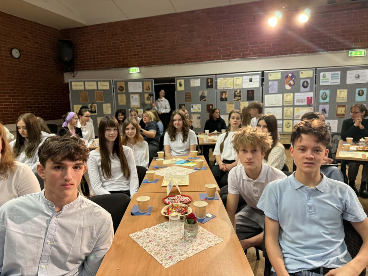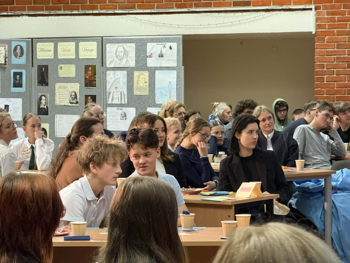 Kovo 6 d. mūsų gimnazijoje vyko tradicinis atvirų durų tarpmokyklinis renginys „Matinée 2026 - Verse Voyage“. Gimnazistai ir svečiai iš 7 mokyklų ne tik deklamavo, bet ir inscenizavo poeziją anglų, vokiečių, prancūzų ir turkų kalbomis, kūrybiškai pristatydami autorius. Ypatingai dėkojame Vilniaus universiteto dėstytojams dr. Galinai Miškinienei ir dr. Akinui Gurbuz'ui bei jų studentams už aktyvų dalyvavimą renginyje. Šaunūs ir entuziazmo pilni vedėjai bei smagi pertraukėlė su arbata, gardumynais ir simbolinėmis dovanėlėmis sukūrė jaukią ir linksmai kūrybišką atmosferą. Renginys paskatino mokinius pažinti literatūrą, sceninį meną ir sustiprino komandinio darbo įgūdžius. Ačiū visiems, prisidėjusiems prie šio įkvepiančio renginio!